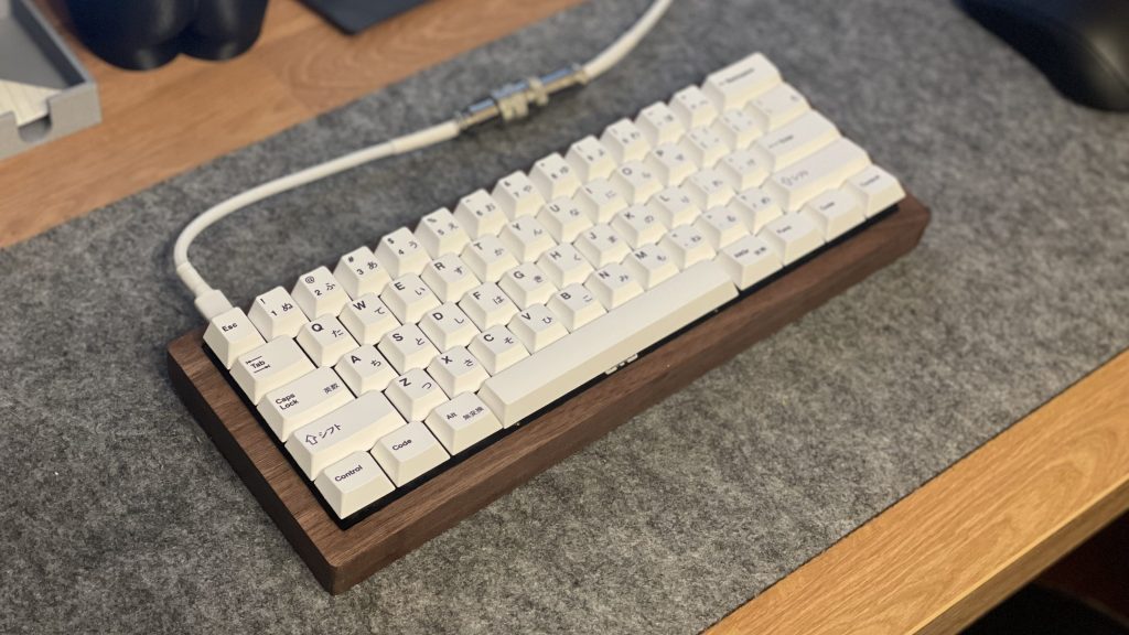 Once I had experience wiring, soldering, and testing my connections I set out to design and build something I use everyday, a computer keyboard. Like previous projects, this hobby is relatively well explored and there are plenty of resources available to troubleshoot and guide you through the process. In 2021, after much research, I ordered a PCB, switches, keycaps, and I cut my own walnut case. I hand soldered all the switches to the board, compiled new firmware to match my layout, and made a custom USB-C cable to match the keycaps. The finished keyboard can be seen in the gallery below or the on the Woodworking page.