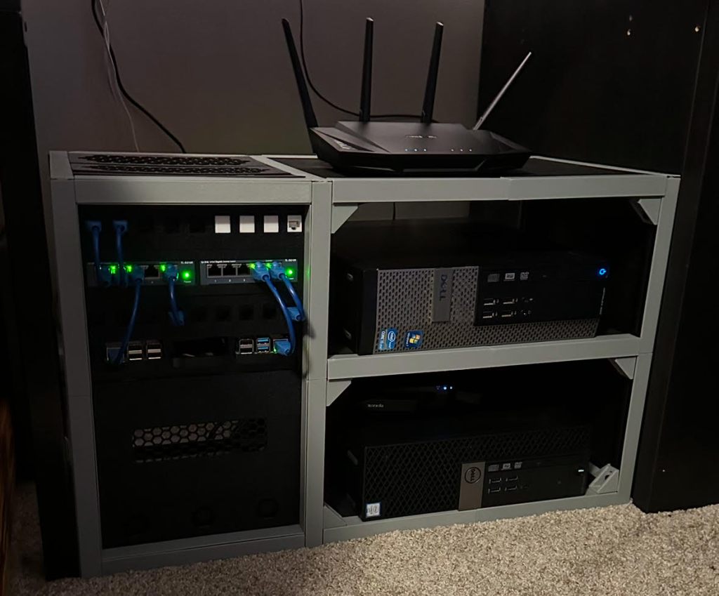 At the end of 2023 I started to feel confident about my understanding of the Raspberry Pis, so decided to build my own computer. The purpose of this build was to add a network attached storage (NAS) device to our new home. This would give us a place to safely back up our data. This project quickly evolved into a home lab. I’m now hosting a Plex server, running Home Assistant for home automation, Vikunja to organize everyone in my home’s schedule, and Mealie to store our recipes. This all runs on 10 inch rack alongside a pair of souped-up Dell Optiplexes.